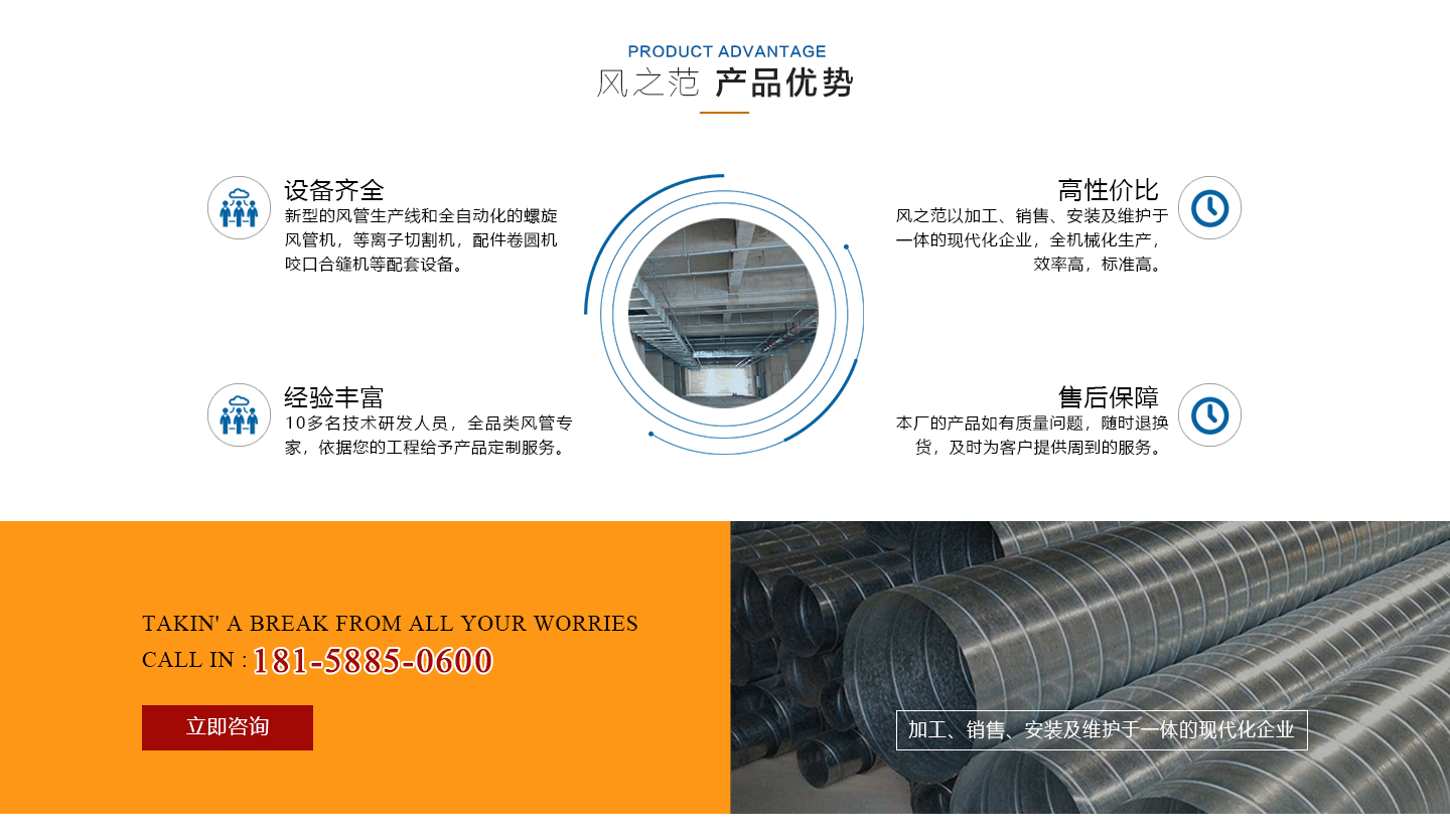 安徽風(fēng)之范通風(fēng)設(shè)備有限公司,是北京恒通偉業(yè)通風(fēng)設(shè)備有限公司再創(chuàng)的新臺階,多年來,公司員工憑著“誠信敬業(yè)、團(tuán)結(jié)拼搏、勇于開拓、務(wù)實(shí)進(jìn)取”的企業(yè)精神,先后承接了多項(xiàng)重點(diǎn)工程項(xiàng)目,使公司健康穩(wěn)步發(fā)展。現(xiàn)由于公司的壯大,業(yè)務(wù)的拓展,又于2016年底,成功坐落于安徽省合肥市包河區(qū)。本公司生產(chǎn)設(shè)備精良,技術(shù)力量雄厚,質(zhì)保體系完善!讓用戶體驗(yàn)到,貼心的服務(wù),無憂的售后!風(fēng)之范是以加工、銷售、安裝及維護(hù)于一體的現(xiàn)代化企業(yè),同時以“創(chuàng)未來之風(fēng)、營誠信之范”為核心理念,面向全國各省市,大量生產(chǎn)鍍鋅板、不銹鋼、玻璃鋼、酚醛復(fù)合等通風(fēng)管道、螺旋風(fēng)管、廚房排煙罩、油煙凈化器、各種風(fēng)機(jī)風(fēng)柜、風(fēng)口風(fēng)閥、靜壓箱等配件設(shè)施。廣泛承接商場、工廠、酒店、寫字樓、地下室等,消防排煙工程、除塵凈化工程、室內(nèi)通風(fēng)工程、暖通空調(diào)工程、廚房排煙凈化工程。我們力求上進(jìn),追求,歡迎各界人士技術(shù)指導(dǎo),經(jīng)濟(jì)合作,共創(chuàng)美好明天!